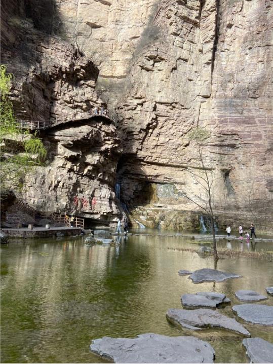 27日早上在公司集合后,大家乘坐大巴車經(jīng)過三個小時的行程,到達(dá)了太行大峽谷景區(qū)。入住酒店及午餐后,首先游覽了有太行魂之稱的王相巖景區(qū)。王相巖景區(qū)唐以來,享有盛名,景區(qū)東臨溪水,西依懸崖,左右兩側(cè)峭壁環(huán)繞,形成了一個閉合性極強(qiáng)的圍谷,暗合中國古代風(fēng)水學(xué)“左青龍、右白虎、前朱雀、后玄武”的理想模式,吸引了歷代名人雅士來此修身隱居。在攀爬過程中,陡峭、曲徑隨處可見。大家一方面驚嘆大自然的巧奪天工,一方面感受大自然的美。